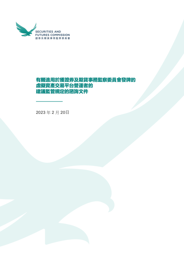 2月20日,香港證券及期貨事務監察委員會(以下簡稱“香港證監會”)宣佈,就適用於虛擬資產交易平臺營運者的建議規定展開諮詢。