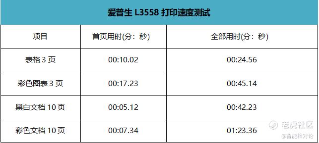 直接結果顯示愛普生L3558打印黑白文檔平均下來4.2秒一張,基本滿足官方15張/分鐘速度,彩色文檔方面,除了首張打印時間較長,也基本符合8張/分鐘的速度,都說噴墨打印速度慢,而愛普生L3558明顯打破了這一偏見。