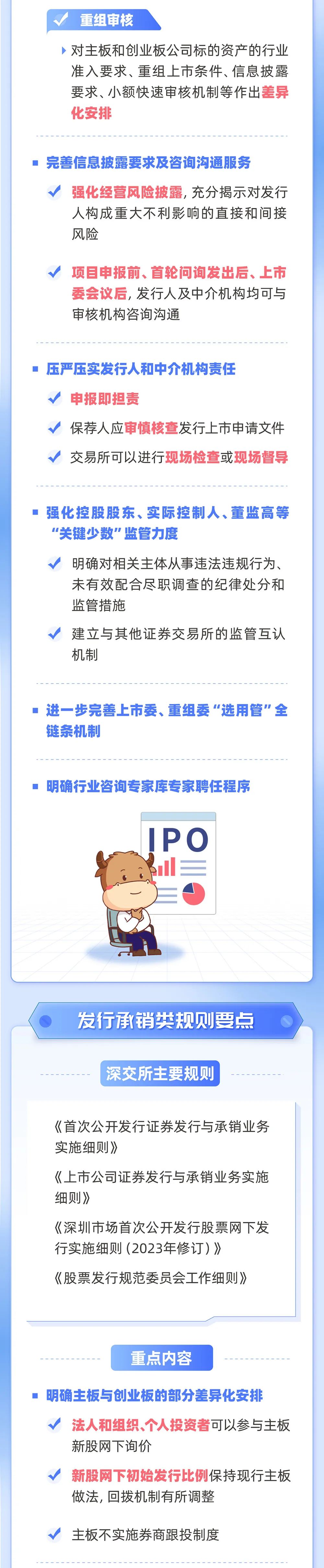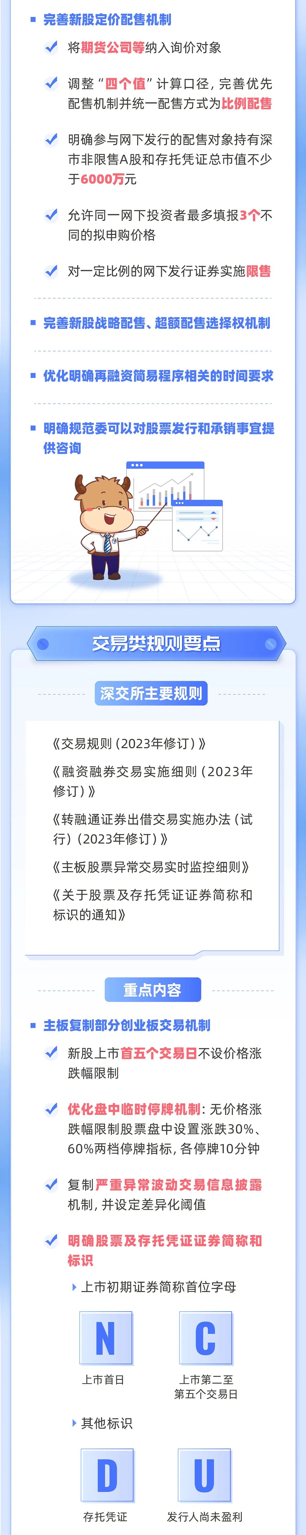 編者按:爲幫助投資者更好理解全面實行註冊制的重要意義和主要內容,深交所投資者服務部特別推出“聚焦全面實行註冊制”系列圖文解讀。本篇介紹全面實行註冊制深交所發行上市審覈類、發行承銷類、交易類、持續監管類主要制度規則要點,一起來看看吧!