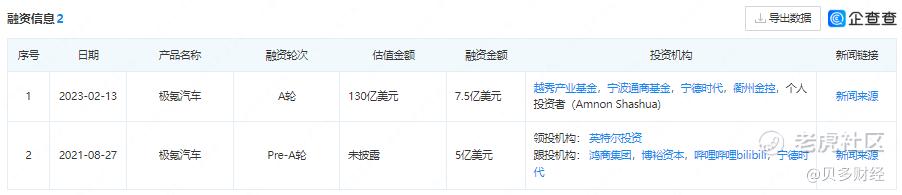 就拿極氪本次A輪融資來看,融資方涵蓋了Amnon Shashua、寧德時代、越秀產業基金、寧波通商基金、衢州金控等衆多明星機構,無一例外,這些公司均在智能駕駛、動力電池、創新材料、高端設備製造等各自領域具有核心競爭力;而上一輪Pre A融資由英特爾投資領投,寧德時代、博裕資本等跟投,同樣融資方都實力不菲。
