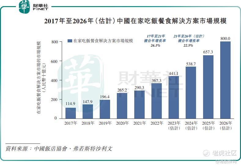 根據中國飯店協會、弗若斯特沙利文數據,中國餐飲市場於2017年-2021年以7.9%的複合年增長率增長,而同期在家吃飯餐食解決方案市場規模複合年增長率則高達26.1%。