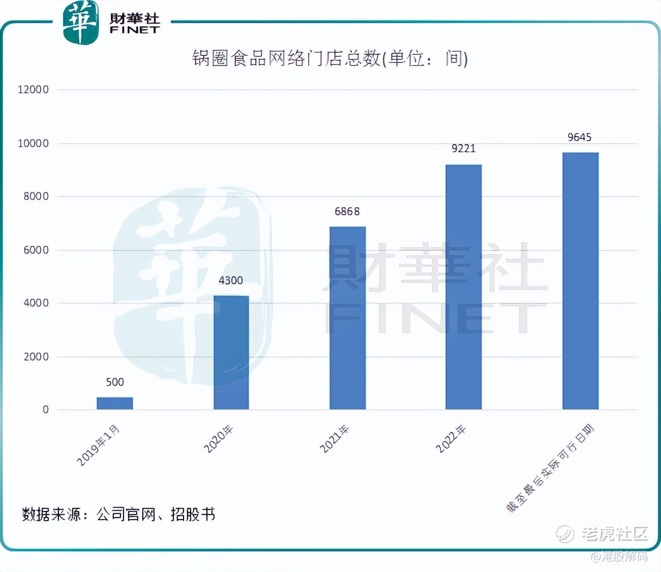 在2019年1月,鍋圈食品網絡門店總數僅500餘間,到了2020年飆升至4300家,並進一步增加至截至2023年3月27日止的9645間。換言之,4年多時間,鍋圈食品的門店規模新增超過9000間,翻了約18倍。