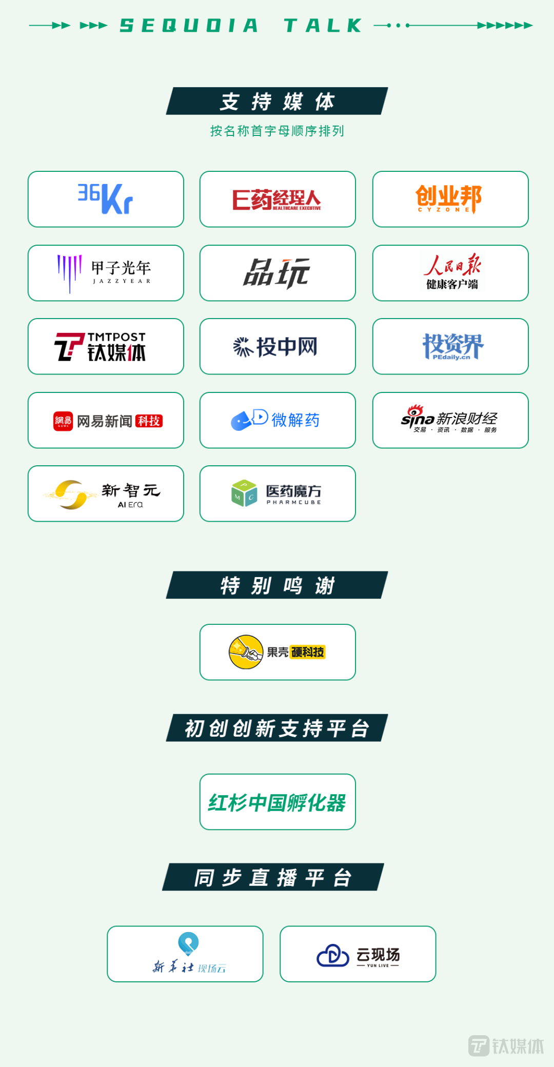 今天,我們開闢「創新的複利」Sequoia Talk系列活動,也是希望打造一個創業者的在線交流生態圈,通過16位紅杉中國科技、醫療等領域的投資人,與40多家創新企業的分享、交流,讓更多人關注到這些企業在不同領域的創新探索,引發行業對於技術創新前景的探討。