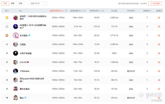 而在10月19日開啓的第二場直播當中,張柏芝也以斷層的優勢,登上了帶貨榜第一名,直播間銷售額比抖音頂流東方甄選高了近5倍。