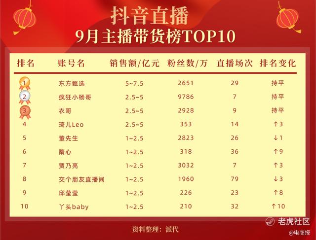 抖音最早的“臺柱子”交個朋友直播間今年以來帶貨數據大幅下滑,在9月抖音帶貨榜TOP10中,僅僅排名第8;而靠“雙語直播”爆火出圈一躍成爲頂流的東方甄選,如今的場均銷售額只在1000萬-2500萬之間,和他巔峯時期的6980萬相差甚遠。
