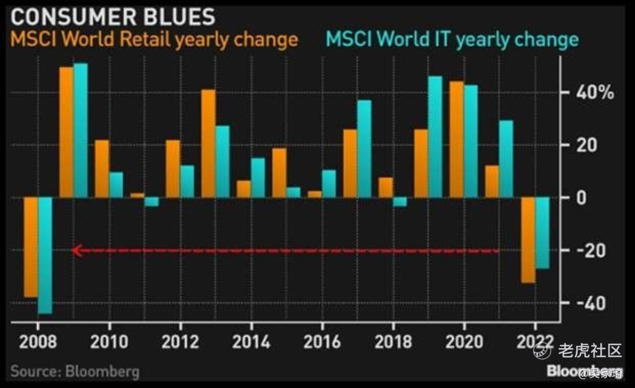 The MSCI World Retailing Index is on track for its first negative year since 2008. The same inflation worries that have unsettled tech stocks are taking a toll on retailers, as disposable incomes get squeezed by higher costs for everything from transportation to labor.