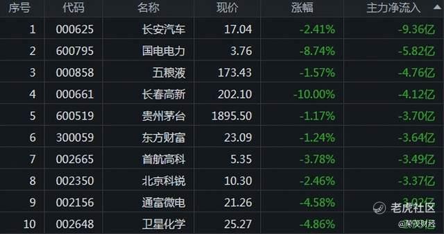 今日主力資金淨流出前10只股: