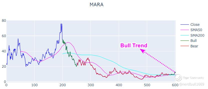Based on SMA50.200, MARA is just starting to build its Bull trend, do note that it is not strong.