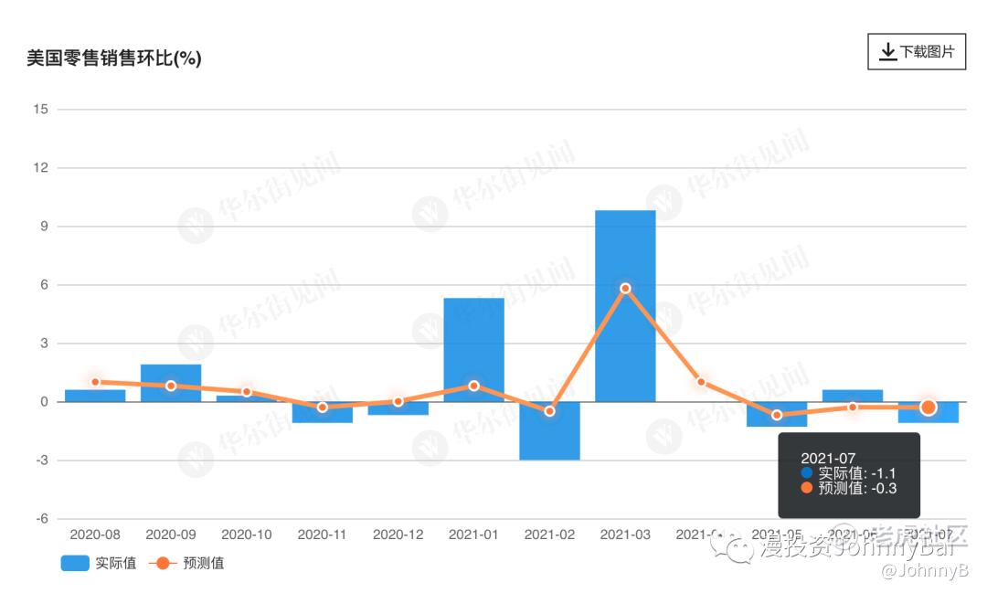你說奇怪不奇怪,號稱恐怖數據的美國7月零售銷售環比減少1.1%,預期減少0.3%,前值增加0.6%。說明經濟恢復沒有想象的好,老百姓不願意消費。可這個雷其實週五的消費者信心指數就已經爆過一次了,爲什麼上週五三大指數V型反彈,背後的邏輯是經濟恢復緩慢,疫情影響慢慢體現出來,美聯儲還會買買買,QE收緊的預期會降低,所以市場有了先悲觀經濟後又暗喜經濟政策的利好。可昨晚零售數據的公佈只演了前半段下跌,後半段卻不演了。這種不按照劇本演戲的行爲,差評!
