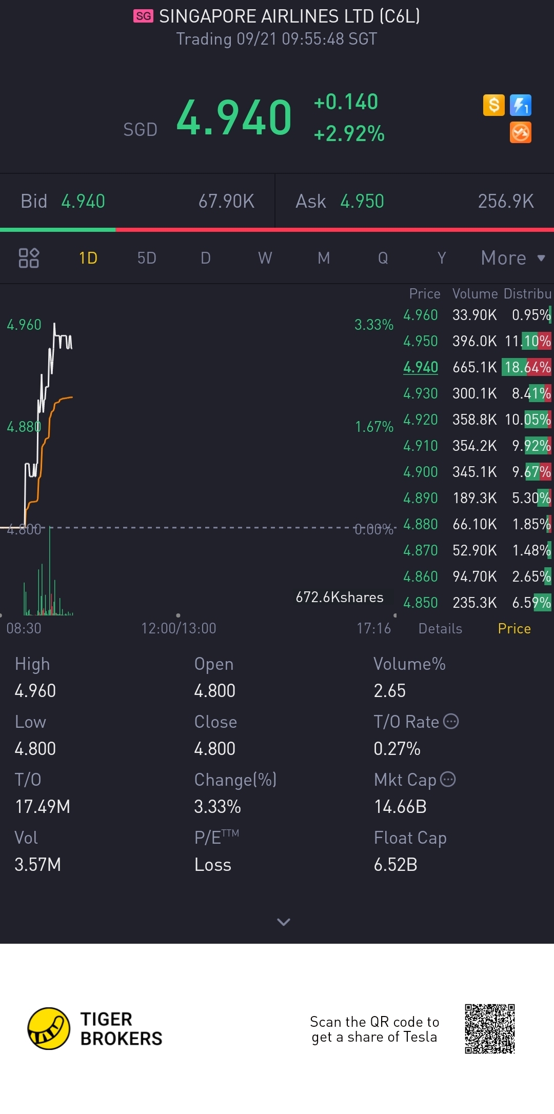 $SINGAPORE AIRLINES LTD(C6L.SI)$up up and away