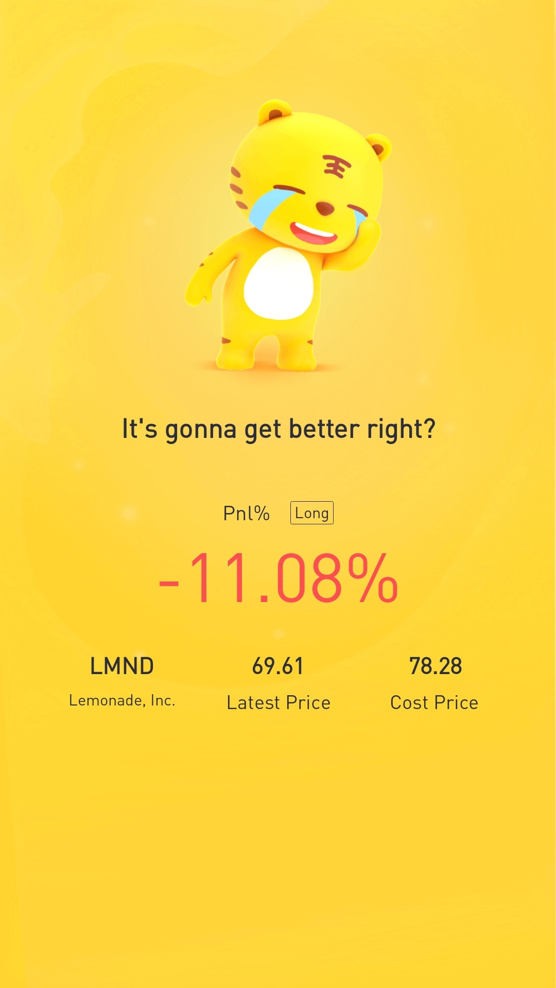 $Lemonade, Inc.(LMND)$one thing about buying into growth companies is that when the market slumps, the stick plunges down faster. But if you sell it now, you won't have anything left when the market recovers