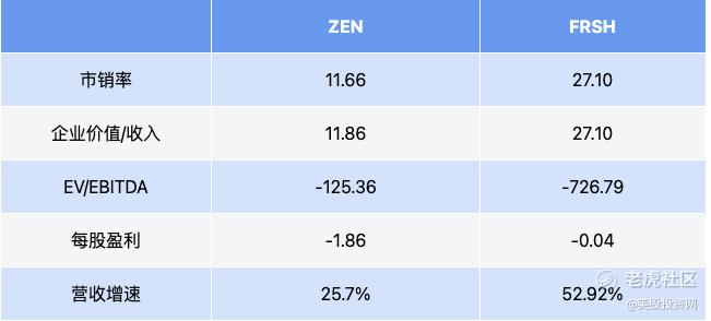作爲參考,一個潛在的公衆可比性是Zendesk (ZEN),與競爭對手Zendesk相比,FRSH的IPO定價並不便宜,儘管它的營收增速約爲ZEN的兩倍。因此,價值投資者可能更喜歡ZEN,而成長型投資者則傾向於FRSH。