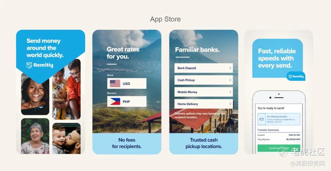 Remitly的發展重點是在全球範圍內尋求匯款和接收資金的超過2.8億移民及其家人。目前85%的用戶主要通過手機應用進行交互。