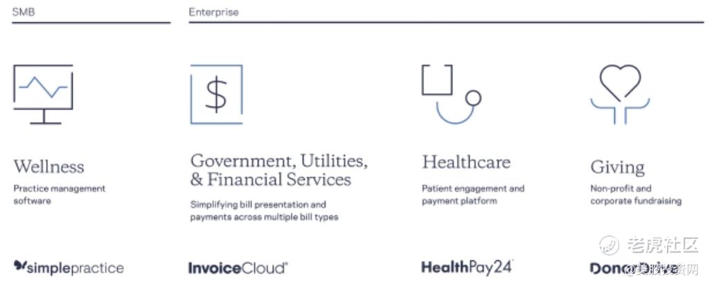 EngageSmart目前爲中小型企業解決方案細分市場中的逾6.8萬家客戶和企業解決方案細分市場中的3,000多家客戶提供服務,涵蓋五個核心垂直領域:衛生與健康、政府、公用事業、金融服務和捐贈。