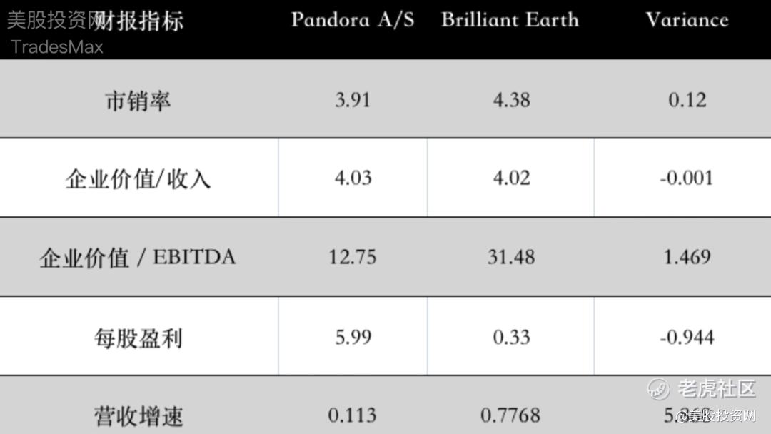 作爲參考,一個潛在的公衆可比將是潘多拉(OTCPK:PNDZF); 與Pandora相比,Brilliant Earth的營收增長速度要高得多,但此次IPO的估值與Pandora 的營收倍數相當,IPO價格預期合理。