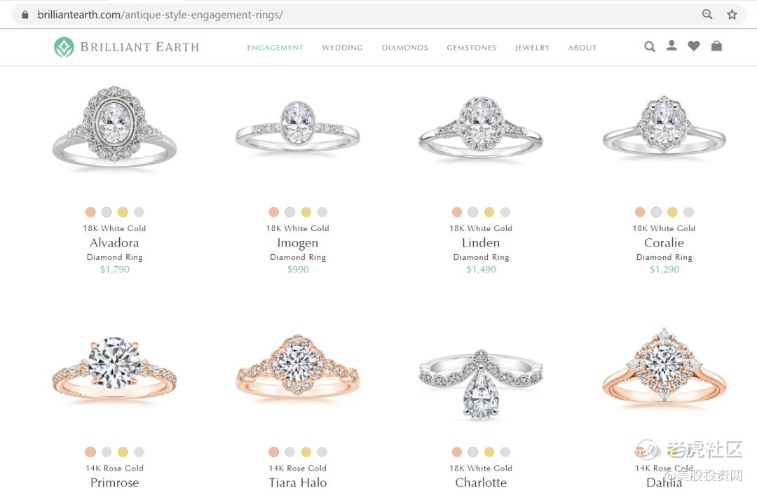 珠寶零售商Brilliant Earth,代號BRLT,是一家以數字爲先的創新型珠寶公司,也是道德採購的高級珠寶的全球領導者。該公司通過在線直銷和零售展廳銷售符合道德標準的珠寶。它既出售開採的鑽石,也出售實驗室生產的鑽石。讓消費者能夠通過市場上超過10萬顆天然和實驗室培育的鑽石來創造自己的戒指設計。