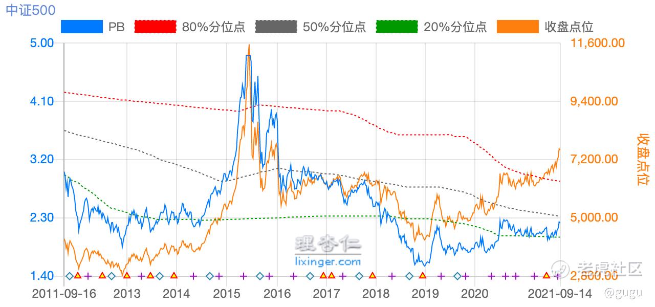 之前我從pe角度看,覺得中證500極端低估,10年pe百分位是9.6%。近日,顧慮到中證500的成分股有一定的週期性,我又用近10年的pb百分位看,當前PB=2.2,大約在40%分位點。實際上估值不算極端低估。(見圖1)