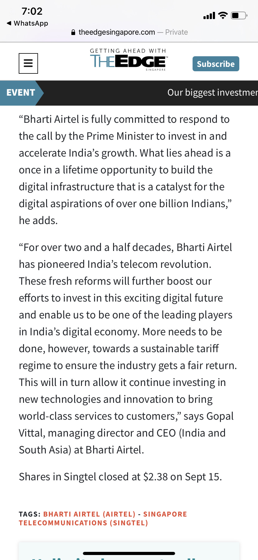 - hydros·2021-09-17India govt keep unfairly taxing the industry and double taxing items. Bharti's case to retrieve compensation from unfair taxes was thrown out by the indian court. how to spur capital spending?LikeReport