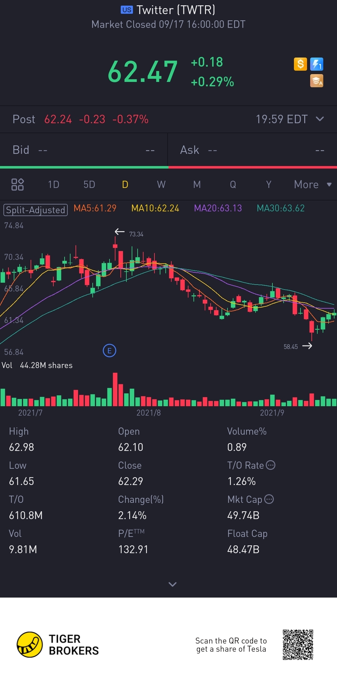 $Twitter(TWTR)$when can back to 70 above