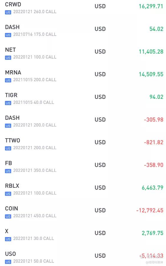 大宗商品漲價,原油自然不會缺席。我們可以看到筆者畫圈的地方,剛好USO要創新高,各方面技術指標也不錯,但是不好意思人家還沒調整到位。筆者進去後,一直在橫盤,一般時間太久就說明有貓膩,期權是那種股票不漲也會下跌的衍生品,時間就是敵人,止損-5114.