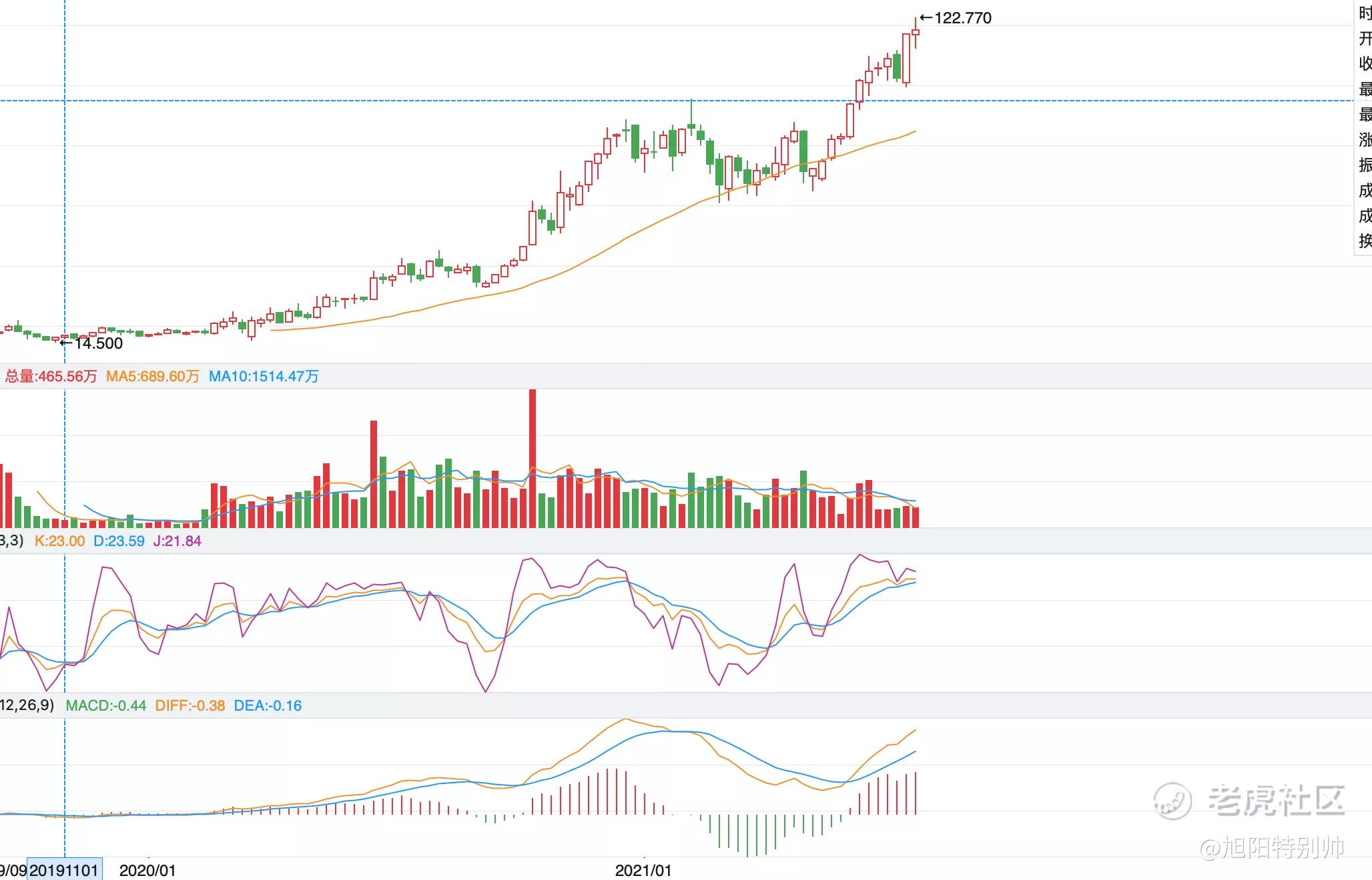 這兩家公司從6月7日開始到6月25日全部賣掉,花了大半個月,你看又是個磨人的過程。總的來說就是周線MACD底部金叉,而且強勢震盪了好幾個月,突破後創新高的話基本沒有阻力,要啓動大行情。於是在日線上,筆者選擇了一個不錯的點位進去了,兩個公司,搞了兩把,資金開始上了10萬美金左右。在RBLX虧損一萬多後,我看上了兩個疫苗股。時間已經來到了7月,4個月過去了。