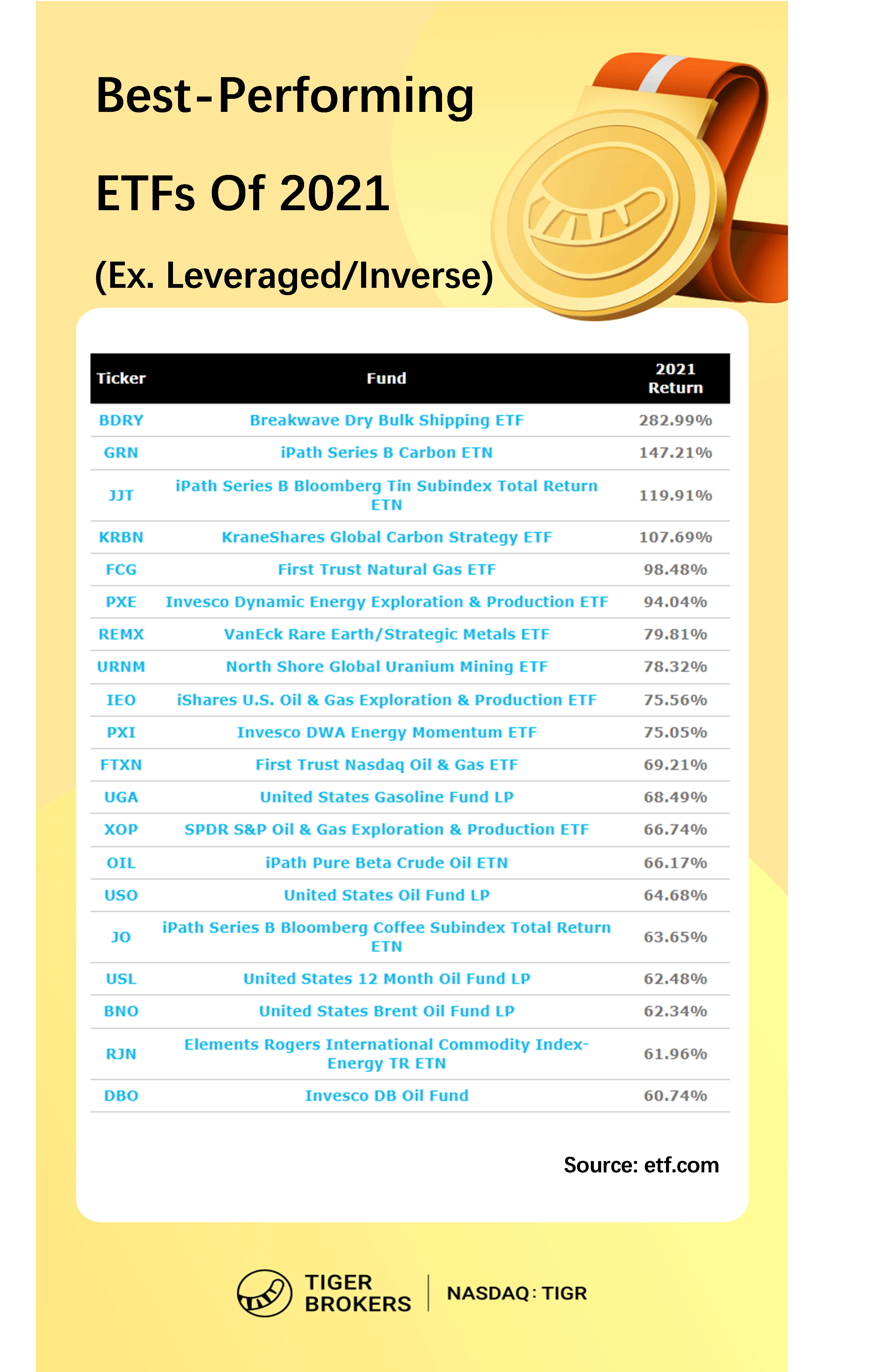 More than $100 billion flowed into equity sector ETFs in 2021, up from $70 billion in 2020, according to data from Morningstar Inc. There are now 494 such funds with a combined $806 billion in assets, up from 370 equity sector ETFs with combined assets of $346 billion in 2016. Natural gas and energy ETFs dominated the list of best-performing ETFs for the year, with carbon credit strategies, rare metals, coffee futures and freight futures also making an appearance.