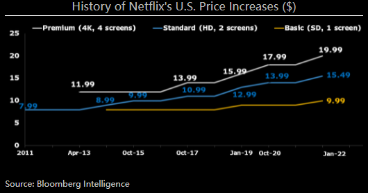 Late Friday, Netflix raised its prices for subscribers in the U.S. and Canada by 11%.Netflix's price increases were larger than anticipated, said KeyBanc Capital Market analyst Justin Patterson. The increases could provide a 1% boost to 2022 revenue estimates, he said in a note to clients. Patterson rates Netflix stock as overweight, or buy, with a price target of 620.
