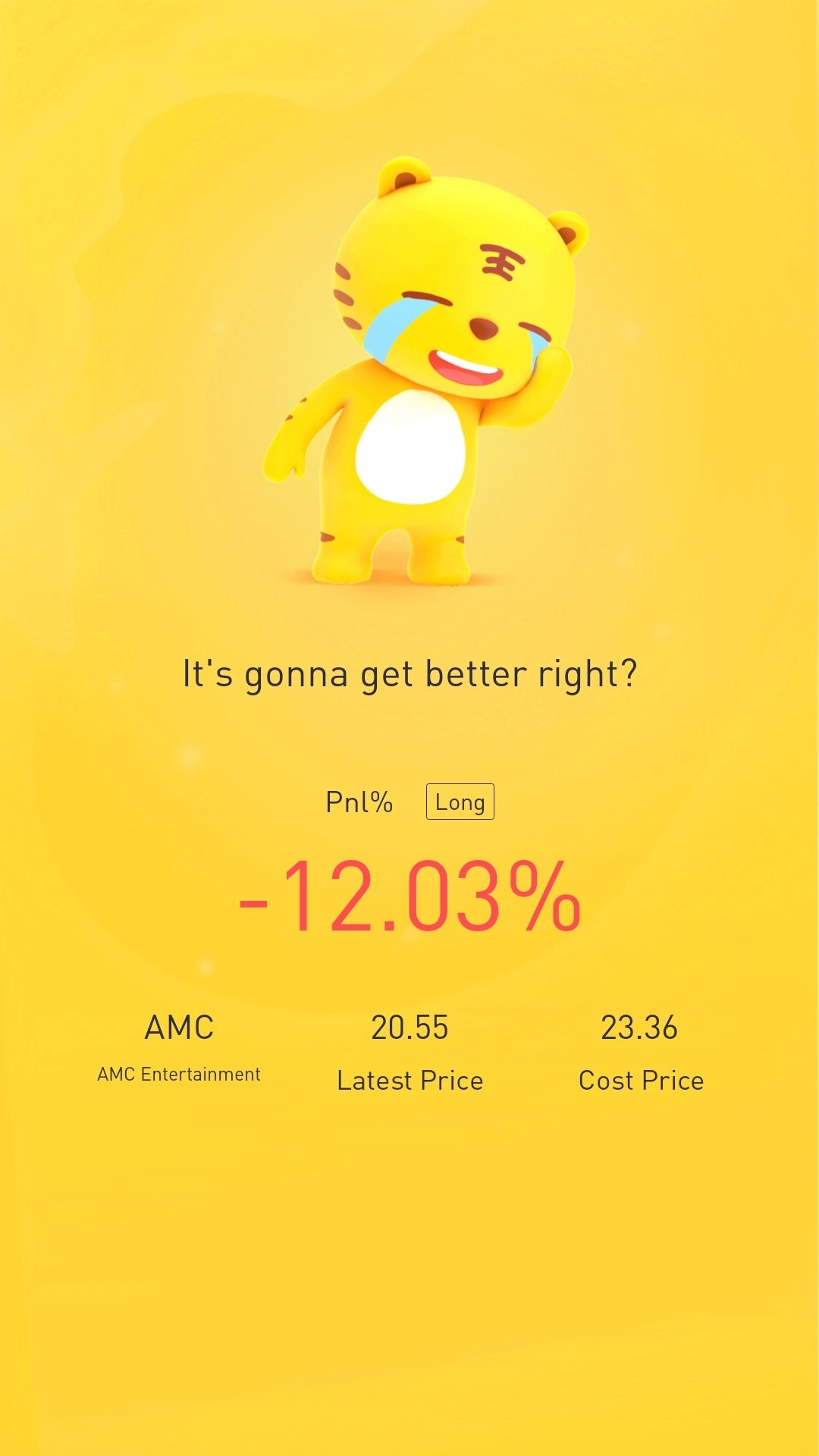 $AMC Entertainment(AMC)$almost green soon. Buying more next week. Let's go!!!