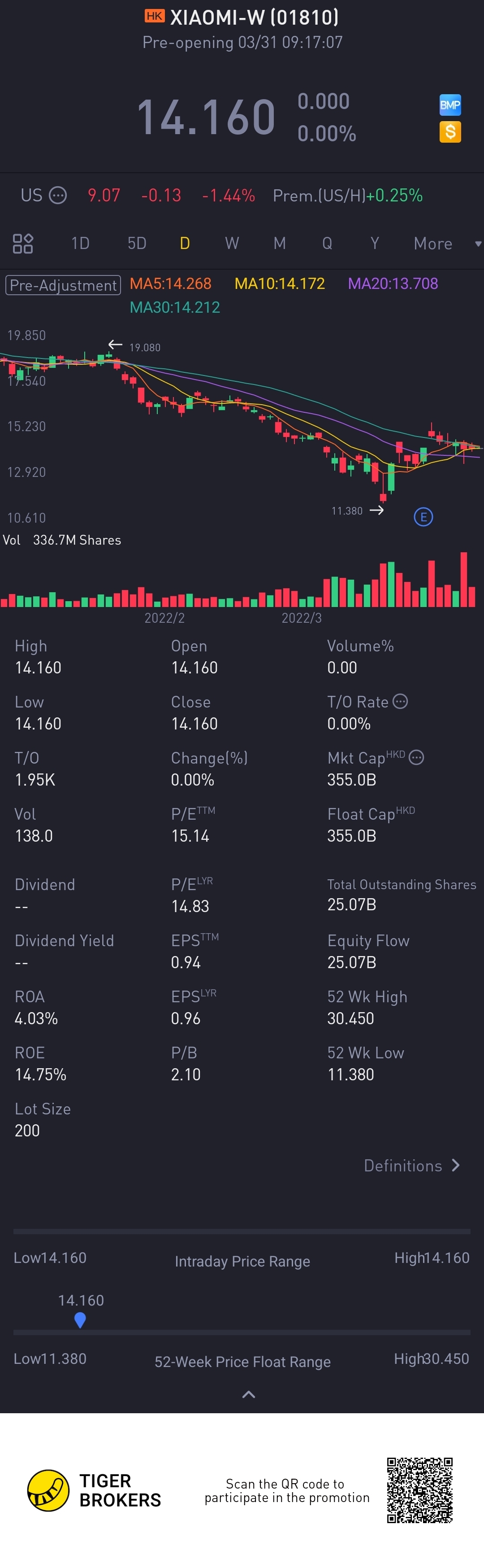 $XIAOMI-W(01810)$expect Xiaomi to start rising again as more Chinese goods will end up in Russia