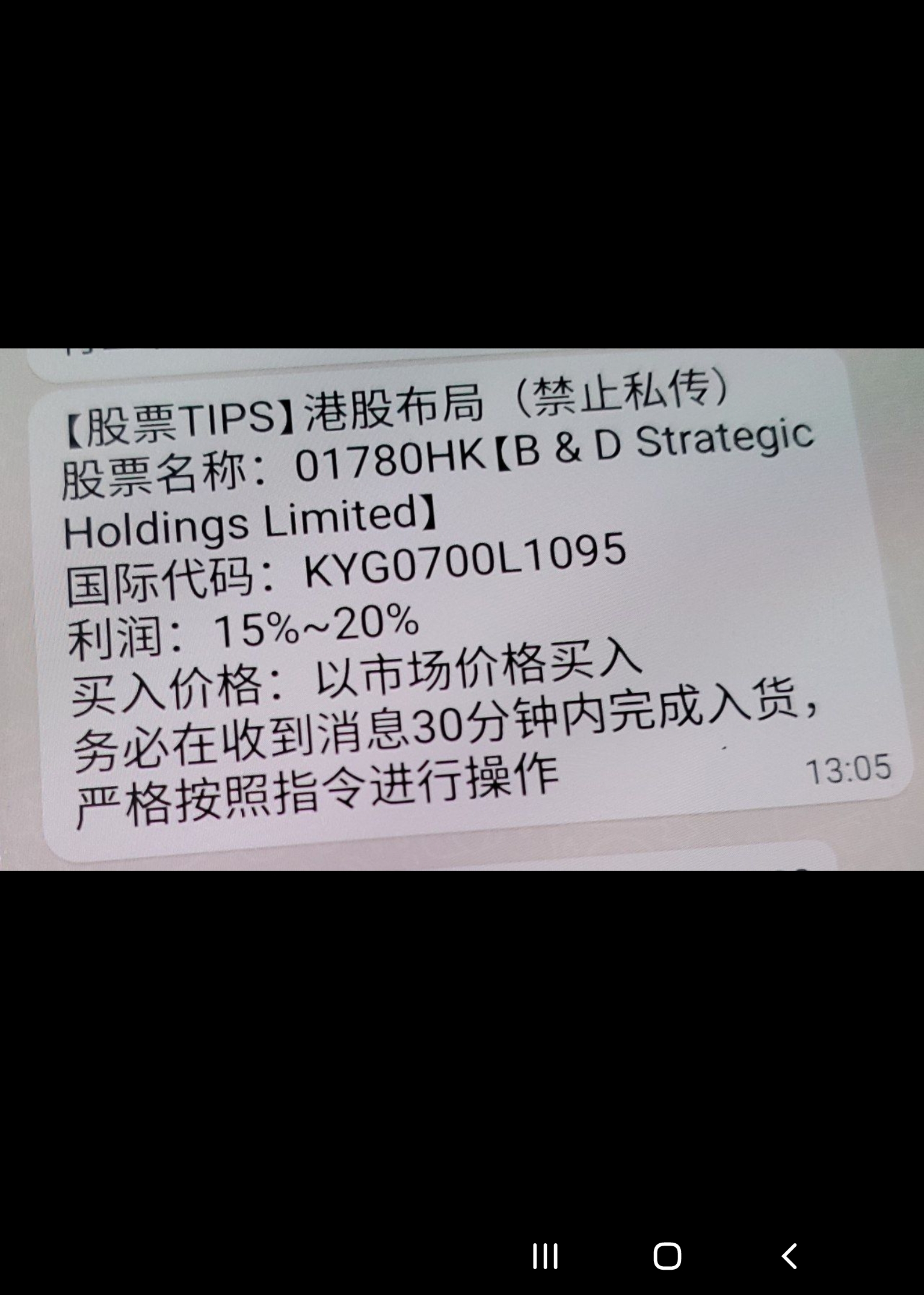 $B & D Strategic(01780)$ always some random hk or china people texted me this [Happy]