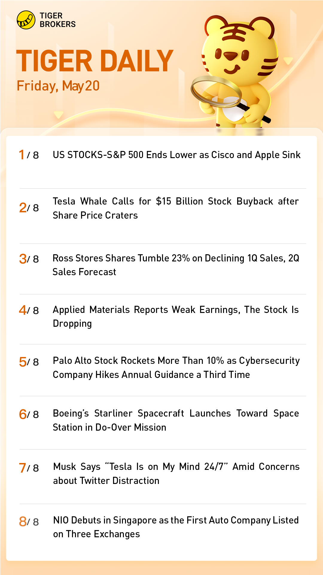 2.Here are the stocks mentioned by the above Tigers๏ผ$Cisco(CSCO)$ $CSE GLOBAL LTD(544.SI)$ $Tesla Motors(TSLA)$ $Wal-Mart(WMT)$ (Not investment advice)
