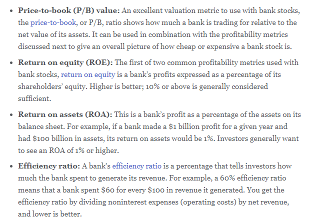 Finally, share some Important metrics for you to distingish good banking stocks: