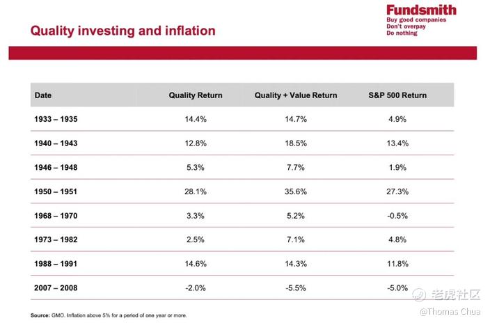 During periods of high inflation (>5%), quality companies will outperform the index.