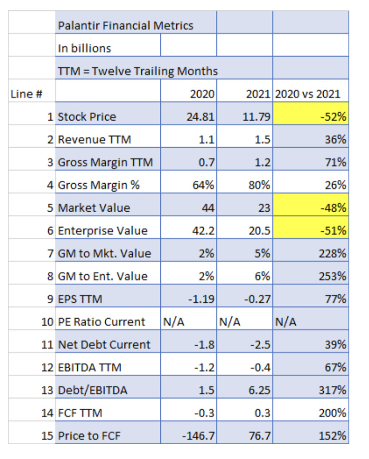 When comparing 2020 with 2021 we can see several areas where PLTR showed significant improvement.