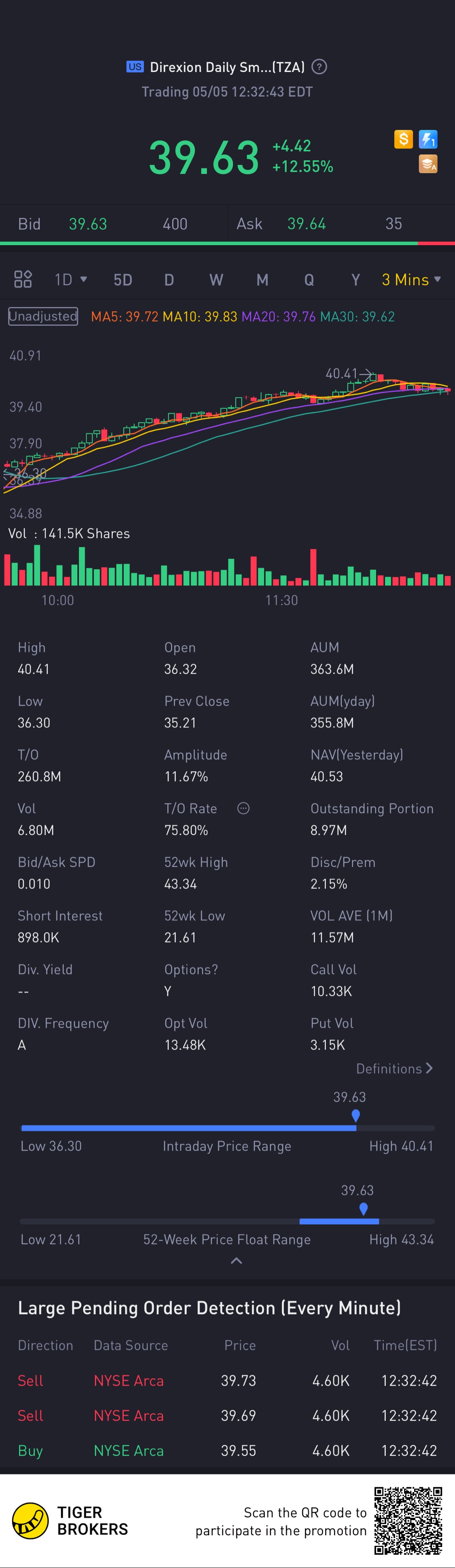 $Direxion Daily Small Cap Bear 3X Shares(TZA)$Buy this