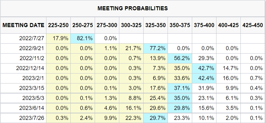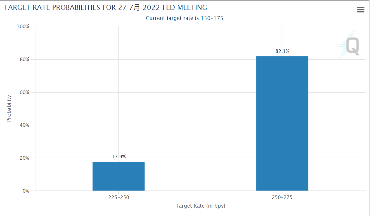 The CME's forecast for a 100 bps rate hike has risen to 82.1%: