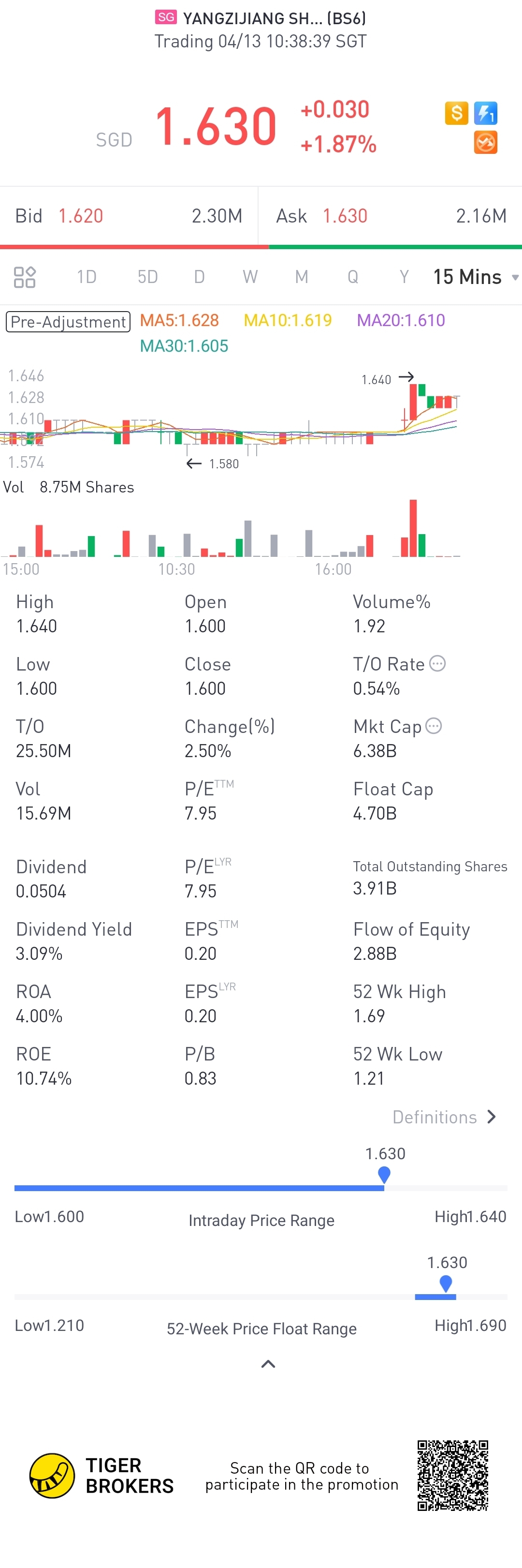 $YANGZIJIANG SHIPBLDG HLDGS LTD(BS6.SI)$Price has rise steadily over the past month and momentum still looks strong.