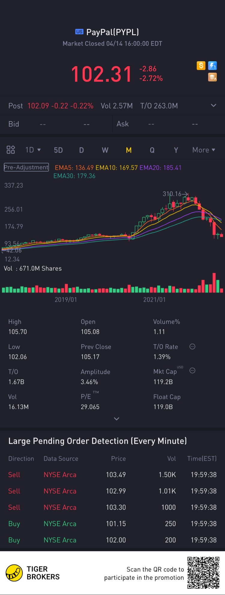 $PayPal(PYPL)$Current downward trend momentum appears strong. Keeping in view ✌️