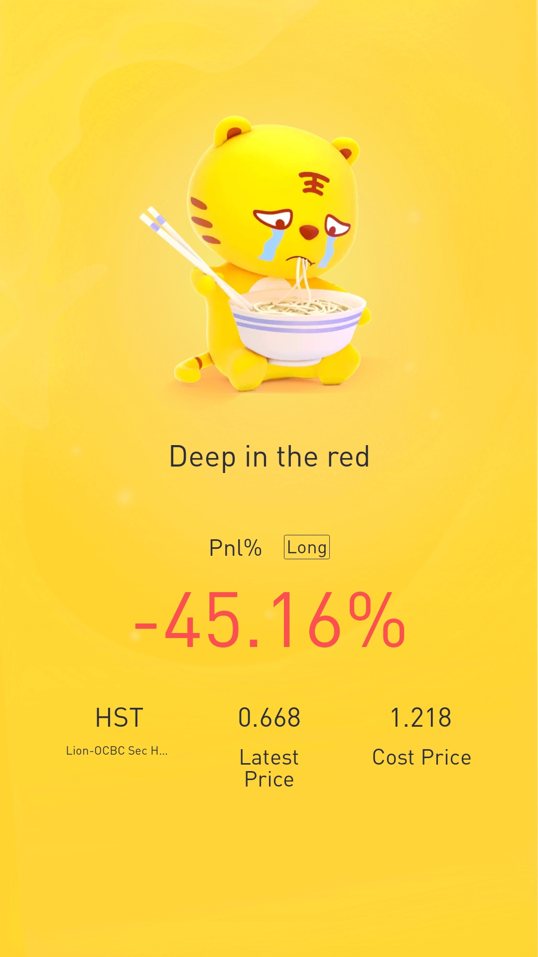 $Lion-OCBC Sec HSTECH S$(HST.SI)$vvery sad, hope one day will be green.