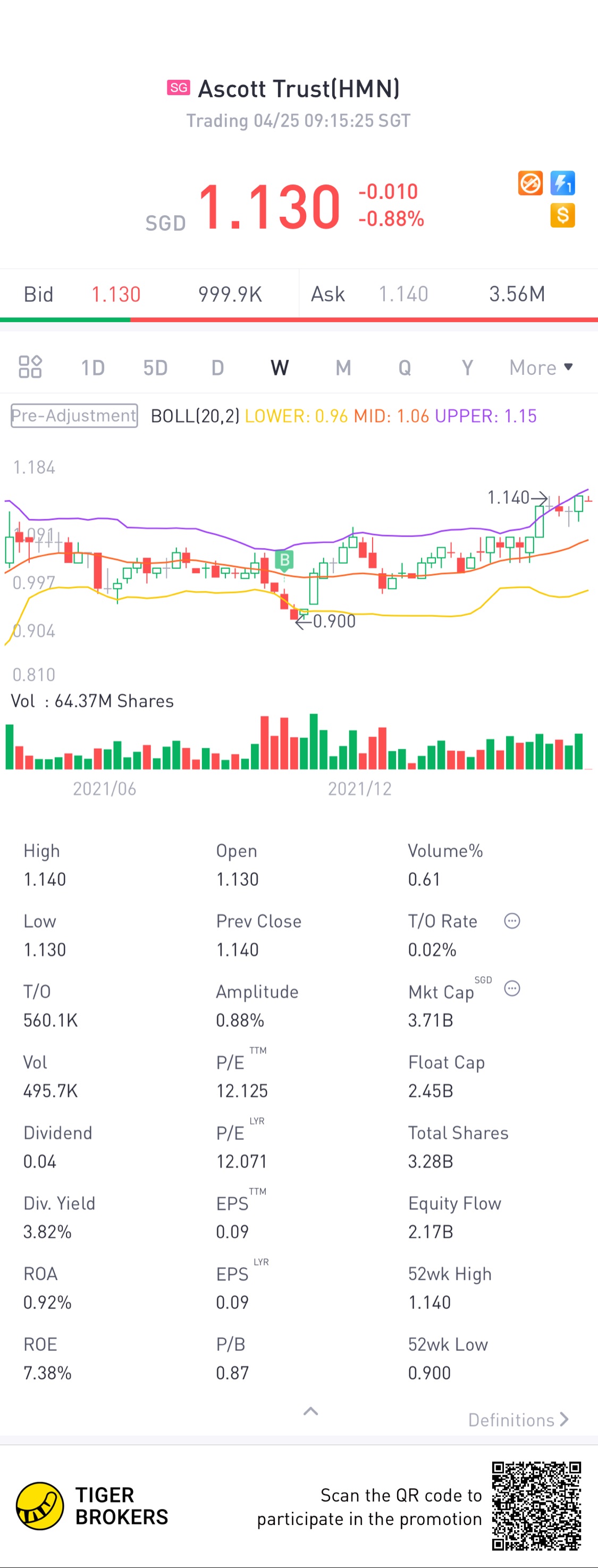 $Ascott Trust(HMN.SI)$Will it hit 1.00