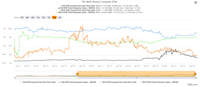 Investors can easily glean that DIS stock still traded at a premium against its 10Y average despite the steep value compression. For example, its NTM EBITDA multiple of 17.3x is way ahead of its 10Y mean of 14.7x. Moreover, back in November, it still traded at 25x NTM EBITDA.