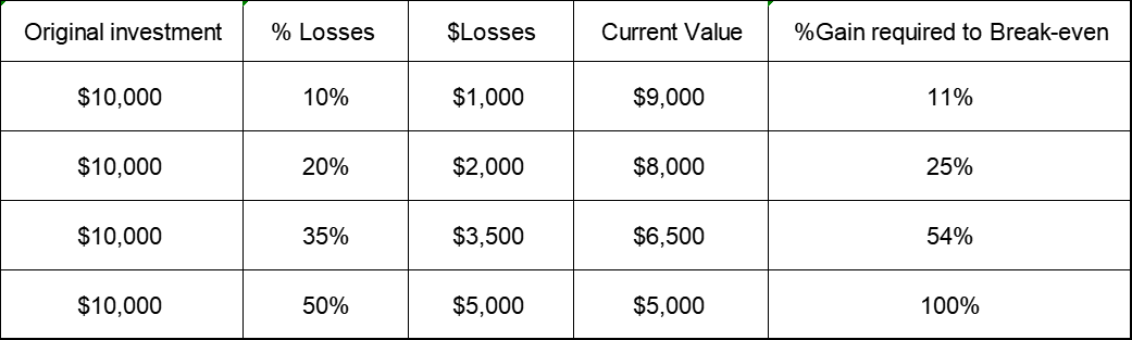 Let's assume you lose 20% on one stock. But you don't cut losses and prepare to hold it for a year. If you want to get your money back, the stock would have to go up 25% in a year. When you don’t stop losses, you waste one year on a wrong and weak stock.