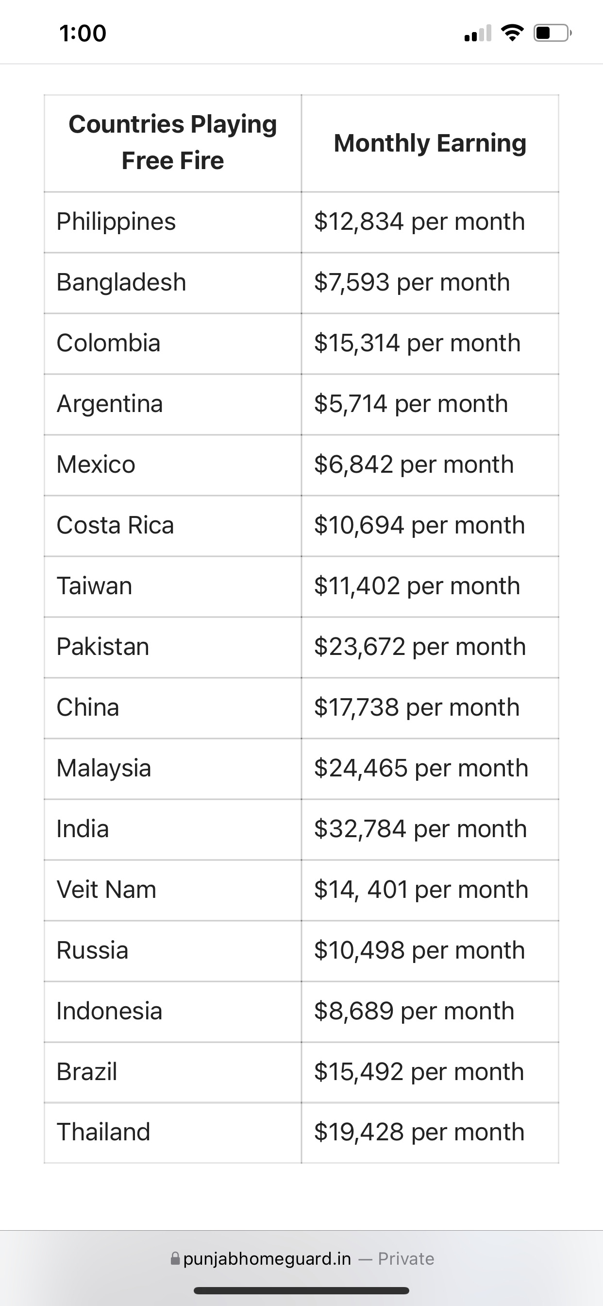 $Sea Ltd(SE)$if https://punjabhomeguard.in/ is you be believed, despite India being the highest free fire earner for Garena, it only represents 14%of their free fire revenue despite having around 40m users out of their 70m users according to https://techcrunch.com/2022/02/13/india-ban-china-apps/?guccounter=1&guce_referrer=aHR0cHM6Ly93d3cuZ29vZ2xlLmNvbS8&guce_referrer_sig=AQAAACOqXT9BCjYRr4Y8exMSaFrxDJyjDU5SCAEquiwY8kKLM0rgSTWF2woz_iIz4yv2labf04EpjR1jqYxpprOapBeK1x-1haQx9tIGpsq2-qEOePindsUDiqIGDO1zOnxYIyfXt7vMhGnBxtEzpnHeJpfXB-i2lCyG33iTbVNzrOdv