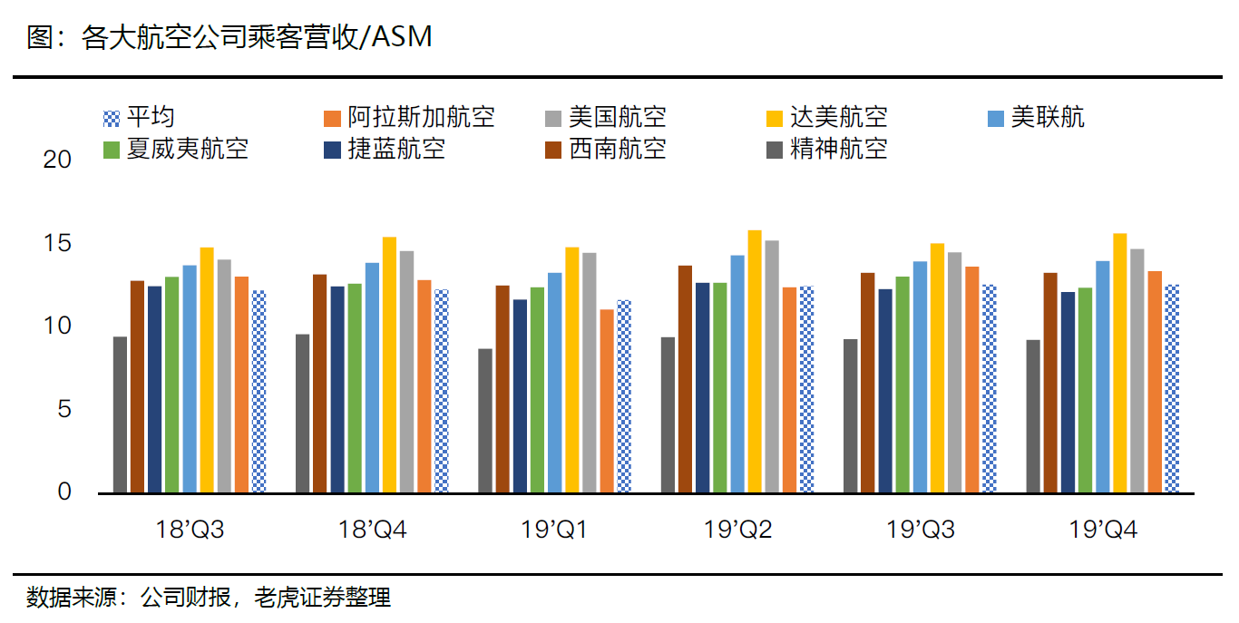 達美航空同樣在單位可用作爲英里的乘客收入方面也較其他公司更高一些,而廉價航空往往有更多運營成本的優勢,因此可能取得的利潤率稍高。