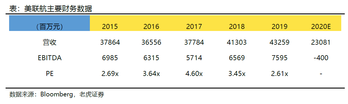 $美國航空(AAL)$ 的股票在疫情之前就表現差於大盤,2019年總回報爲-10.68%,同期標普500指數總回報28.88%,標普500航空業指數的總回報爲10.19%,因此總體而言在2019年美國航空的表現遠遠差於大盤和同行。