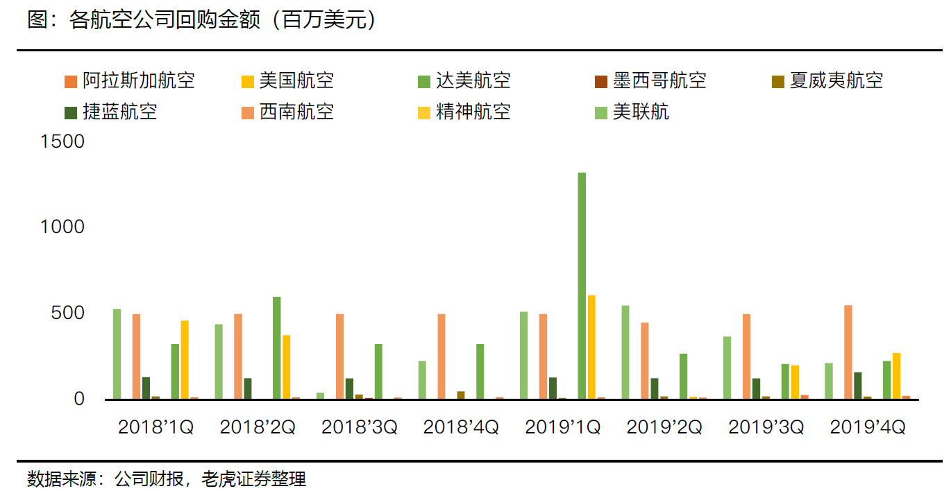 西南航空的未支配資產和流動性較好,有146億美元。美國航空的未支配機隊中約有三分之一(約300架飛機)主要是支線飛機。此外,航空公司可以出售其他例如飛行常客里程等資產以增加現金。航空公司們也暫停股票回購以保留2020年剩餘現金。