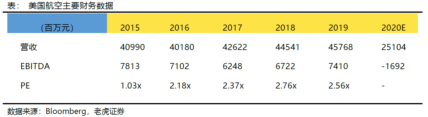 隨着Covid-19疫情在北美地區的爆發,美國主要航空公司的航班表下降了70%以上,這也意味着航空公司賴以生存的經營性現金流入大幅降低。由於固定成本始終較高,航空公司們可能在2020年上半年耗光手上的現金。當然,突如其來的低油價也在一定程度上緩解了成本壓力,同時,波音737的復飛有望在Q3實現,也帶來了一定復甦的希望。