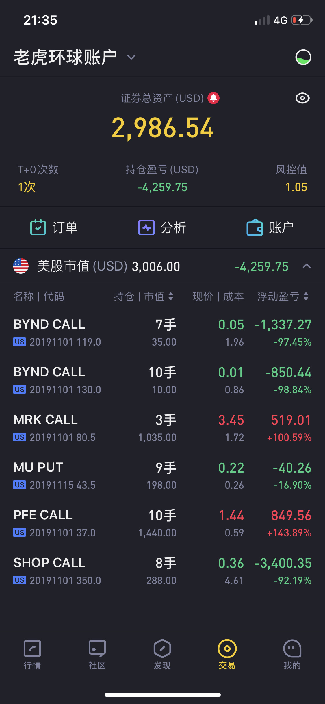 - 期权天王·2019-10-29兄弟, 不瞒你说, 我前天看你的帖子时, 你帐户钱还比我多呢,现在我比你多了, 你还是太猛啊, 静静心吧, 慢慢来。1Report