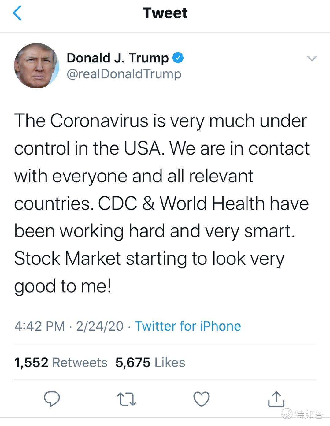 - 浪得虚名·2020-02-25美国股市可不会听特没谱的LikeReport