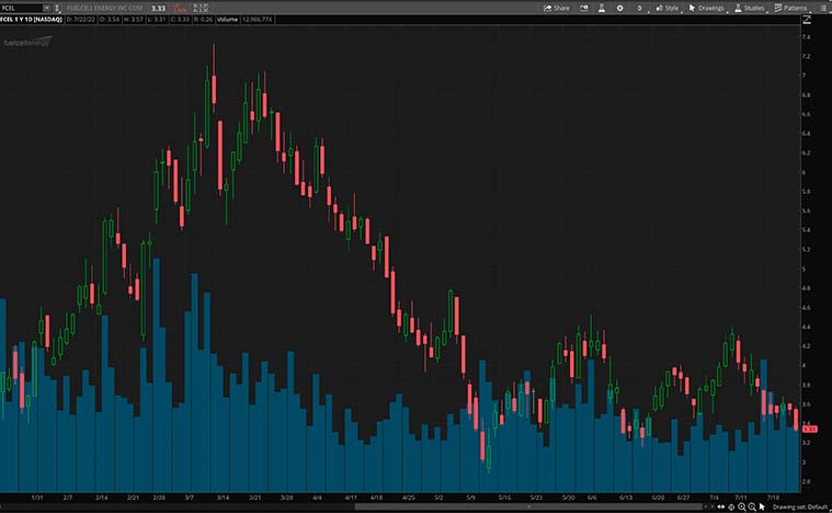 Moving on, we have FuelCell Energy, a industry leader in fuel cell technology. The company aims to decarbonize power and producing hydrogen through its proprietary, state-of-the-art fuel cell platforms to enable a world empowered by clean energy. This includes, designing and installation of its infrastructure to long-term operation and maintenance of its fuel cell system.